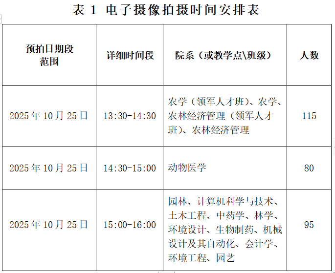 根据省教育厅和新华社浙江分社关于高校毕业生图像信息采集的要求和统一安排,定于2025年10月25日13:30至16:00在浙江农林大学衣锦校区(衣锦街252号)念慈楼206教室进行毕业生电子摄像。