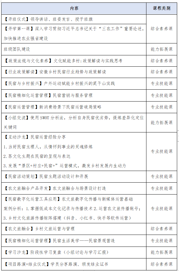 1. 政策理解:使学员深入掌握中央及安徽省农文旅融合、乡村民宿行业相关政策,明确行业发展趋势与合规经营要求。