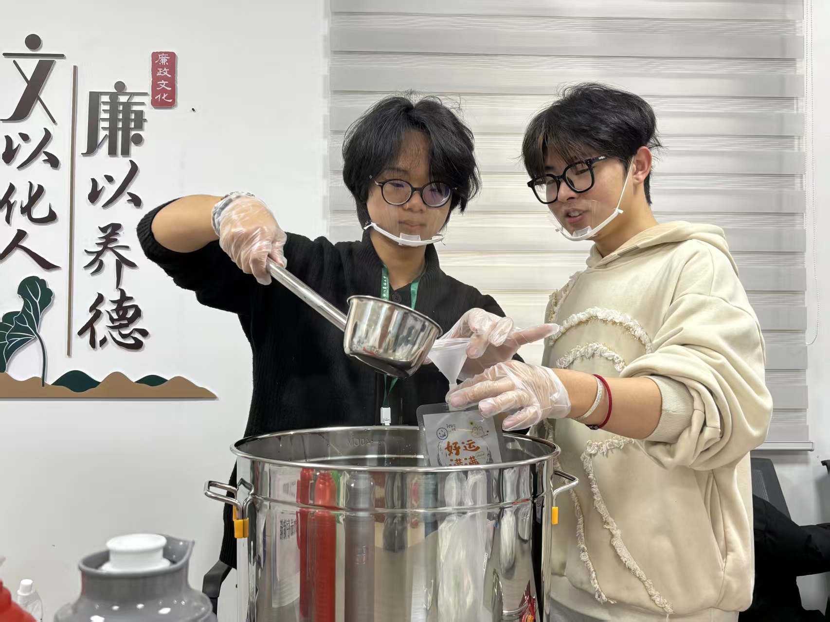 活动当日,志愿者们分工明确、默契配合。一部分同学负责精心调配、冲泡姜茶,另一部分则有序进行分装与物资整理。每一杯姜茶都凝聚着学院师生对一线劳动者的真挚敬意与关怀。