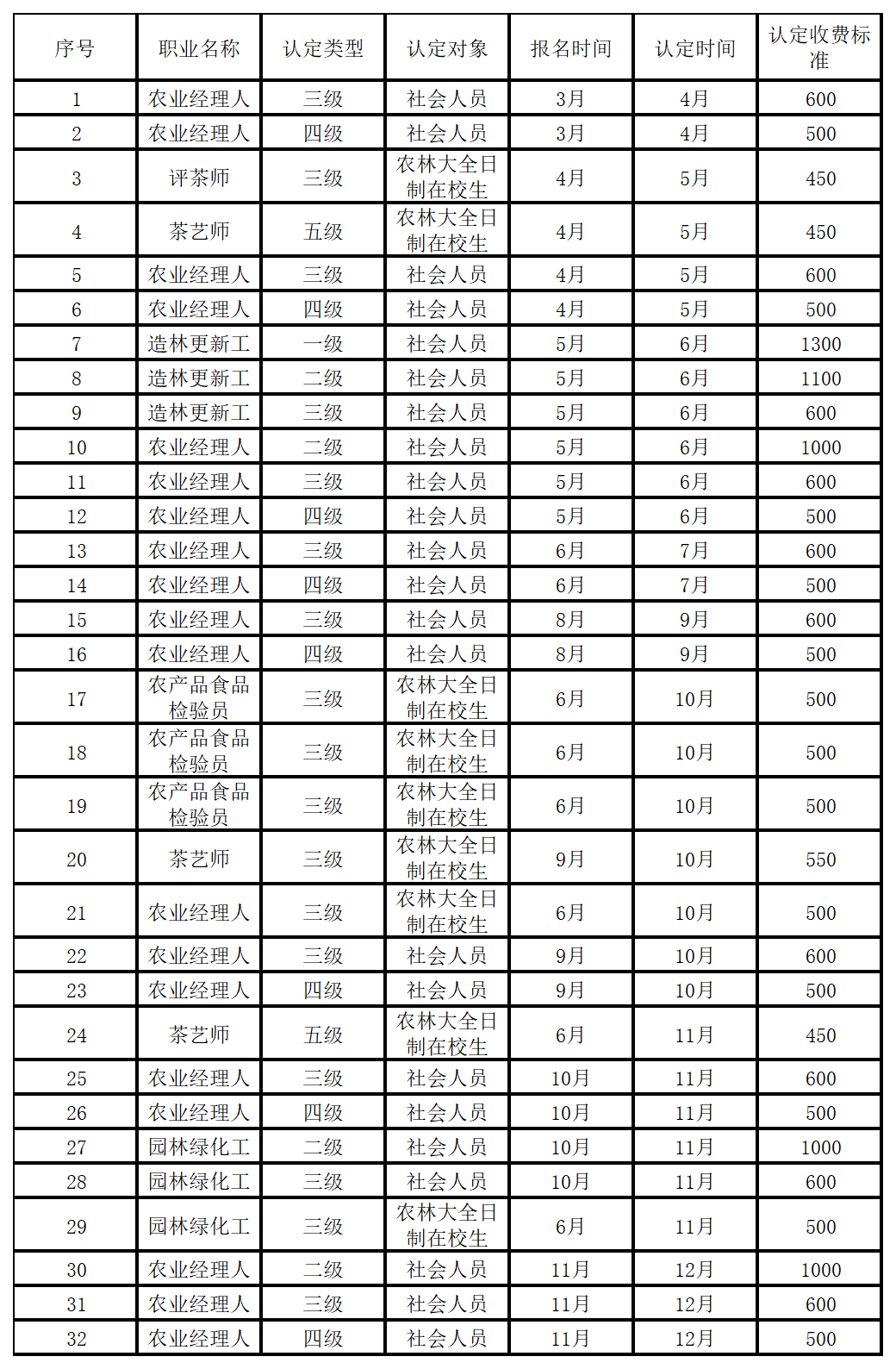 2024年全年完成 22 个批次技能认定服务(农业经理人、造林更新工、茶艺师(校内)、评茶员(校内)),总认定人数 1226人次,其中农业经理人技能认定1027人次。